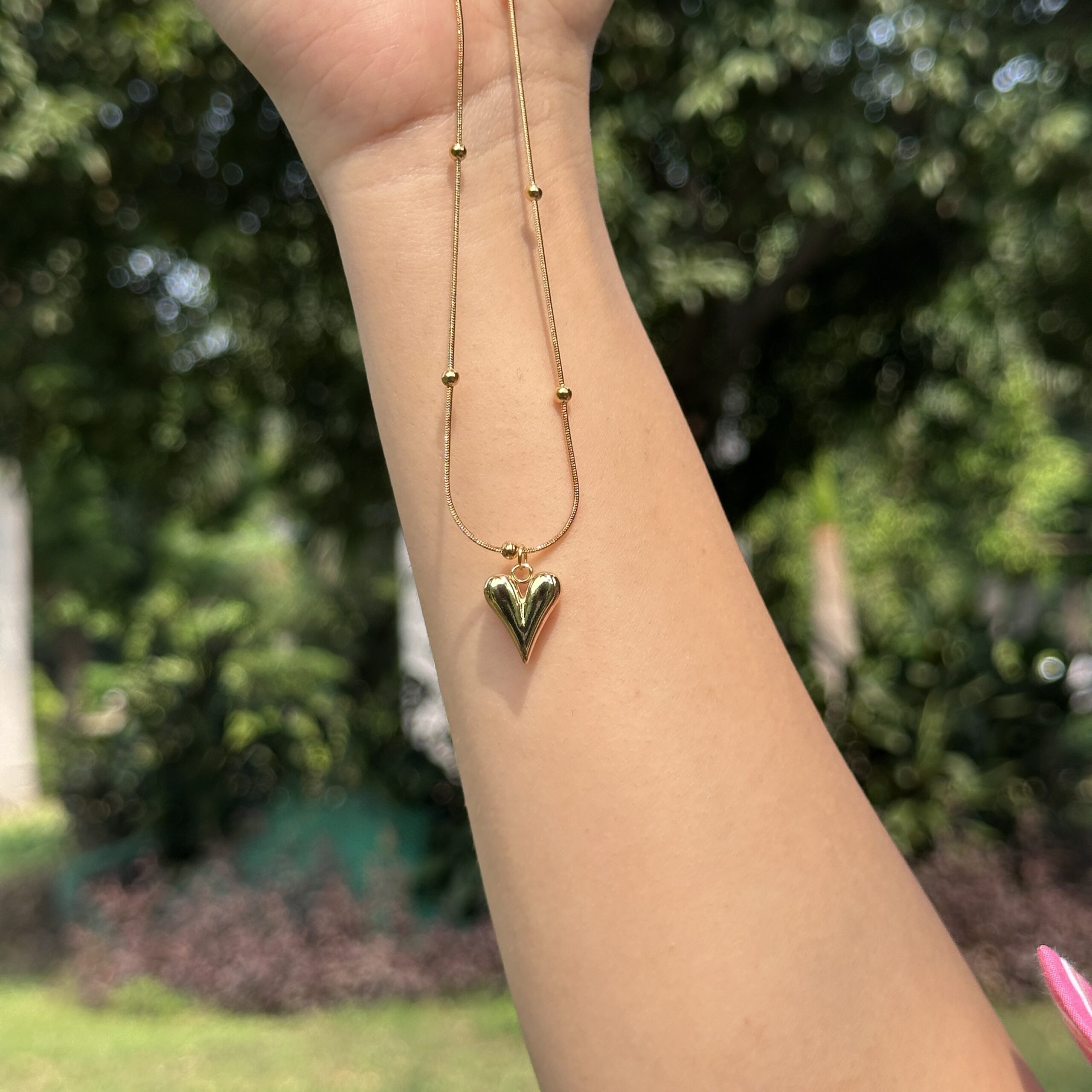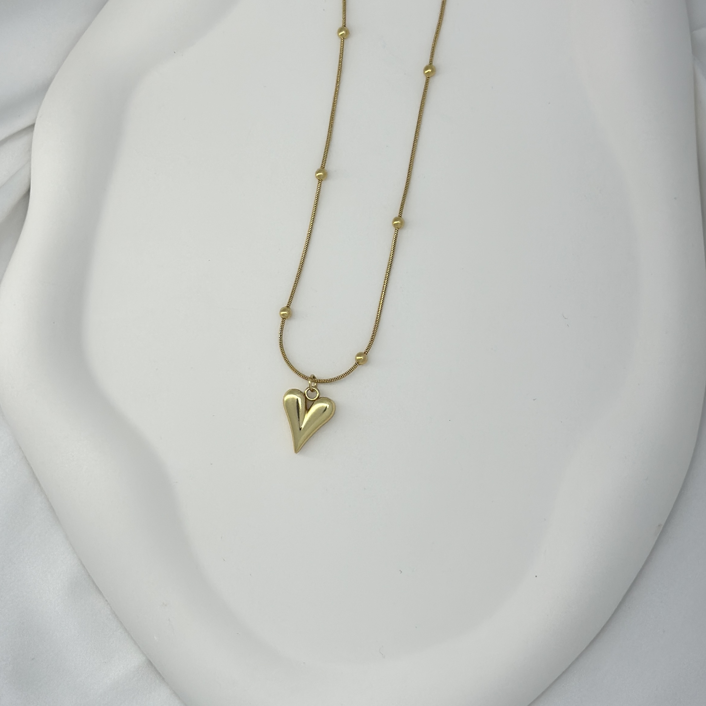 Softly modern and easy to wear, the Beaded Heart Necklace pairs a petite, sculpted heart with a delicate beaded chain. The pendant’s elongated V-heart silhouette has a smooth, mirror finish that catches light with a gentle glow, while the evenly spaced beads along the chain add subtle texture and movement. Designed for everyday ease, it sits neatly at the collarbone and feels comfortable from morning to night. Finished with an anti-tarnish surface to help maintain its shine, this dainty heart pendant necklace is a simple, polished choice for women who love clean lines and a touch of romance.