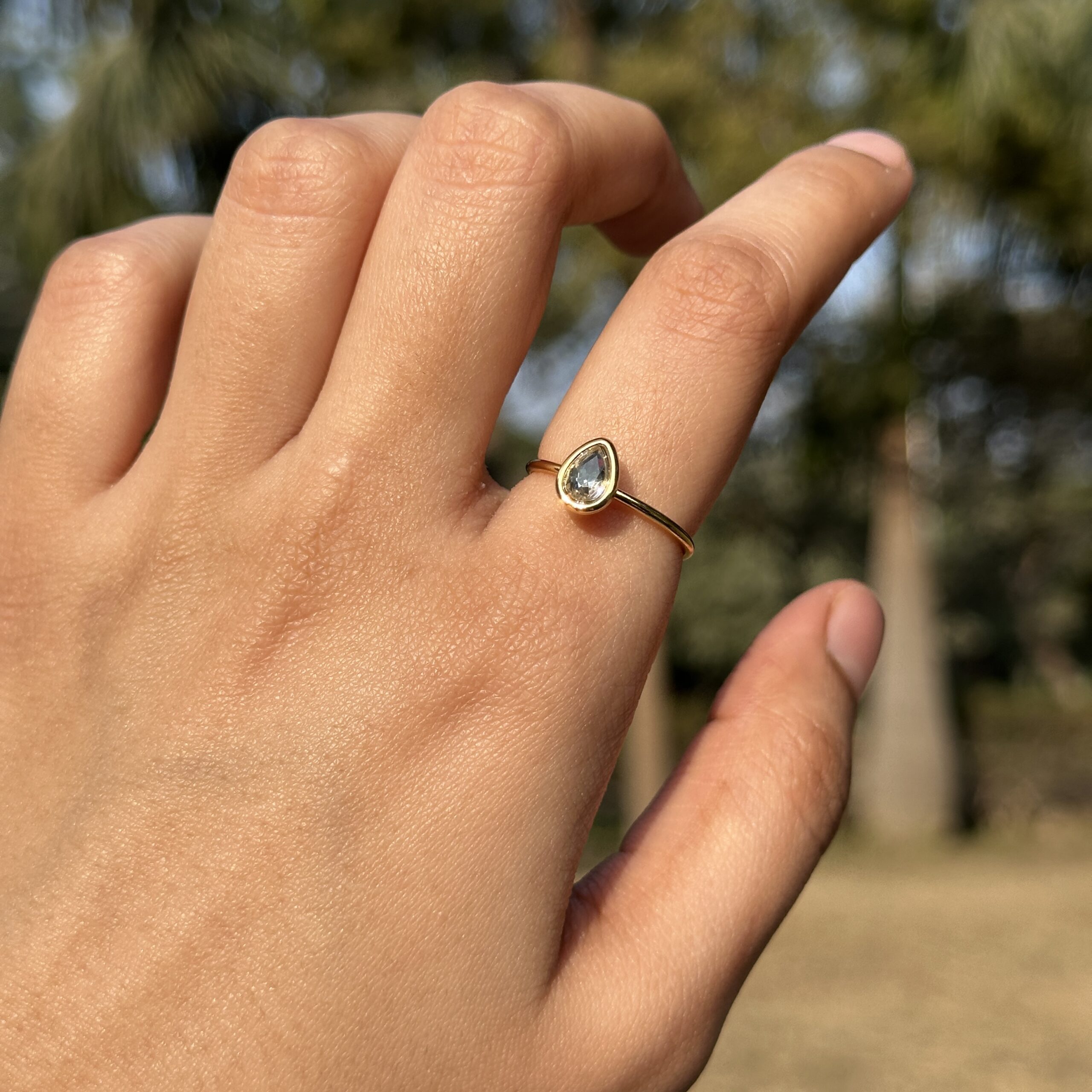 A minimal gold adjustable ring featuring a delicate teardrop-shaped crystal, designed to reflect light with effortless grace. Its slim, refined silhouette makes it perfect for everyday elegance, subtle layering, or a soft statement of timeless beauty.