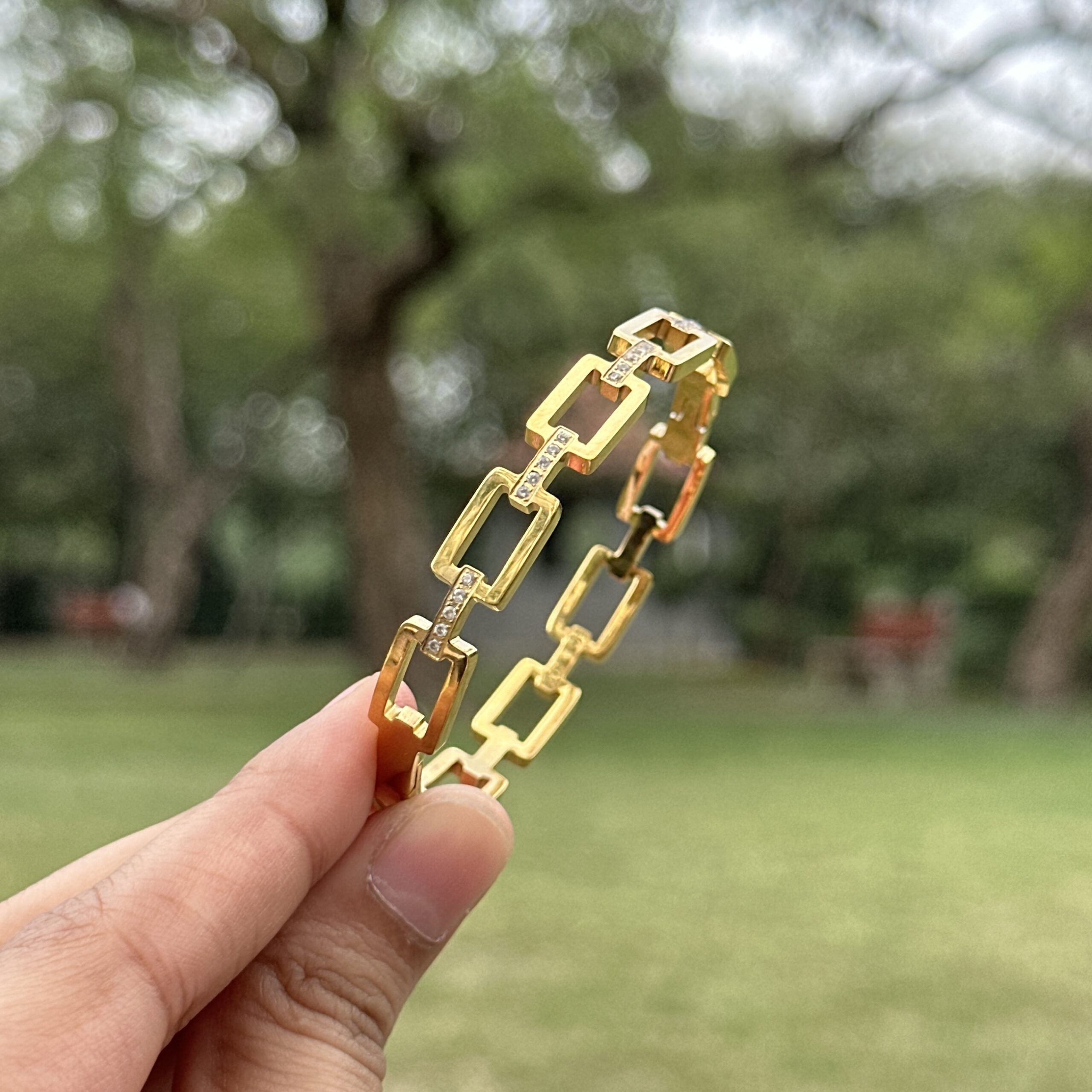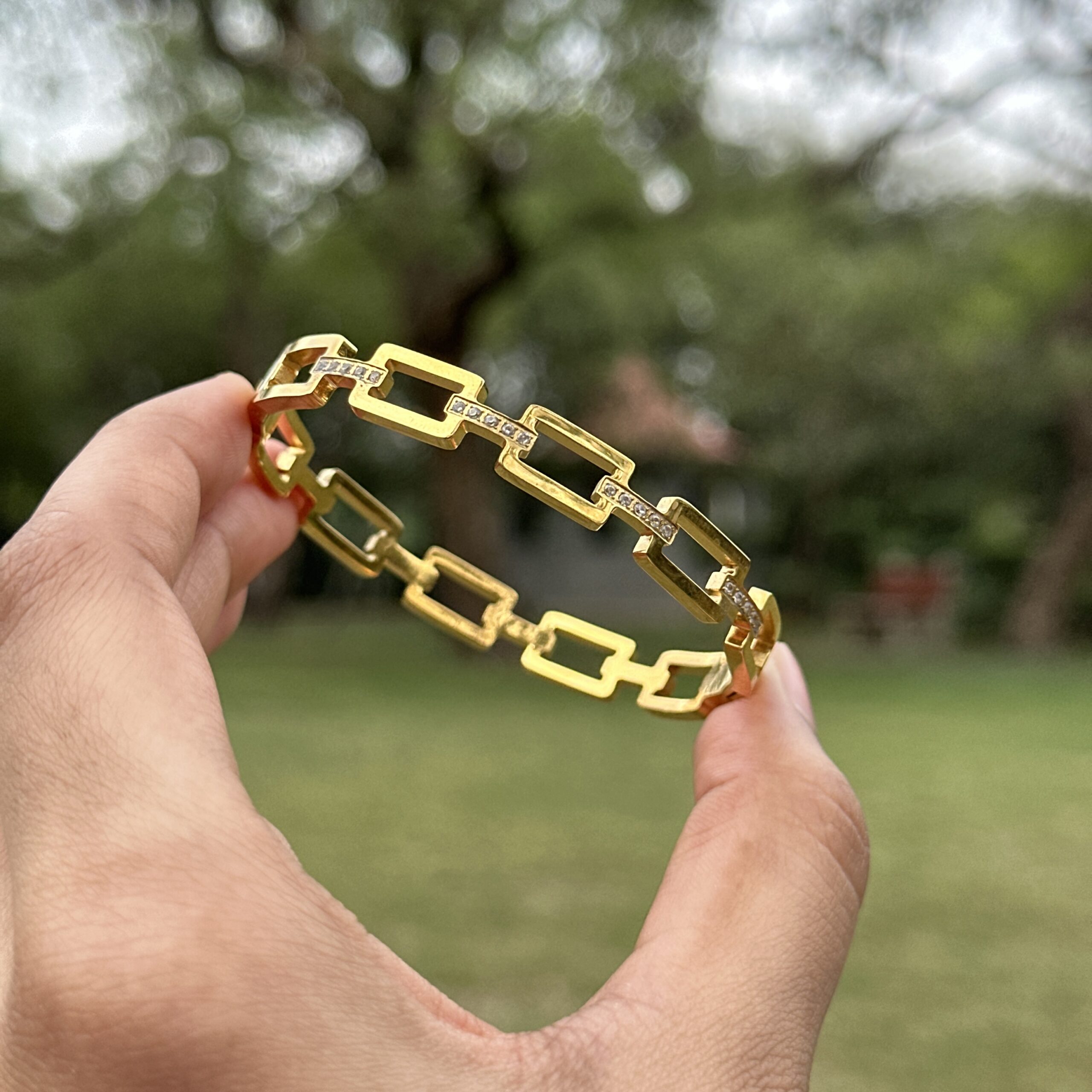The Manhattan Bracelet features a linked chain design with a clean, structured feel that adds just the right amount of edge to your look. The repeating links give it a sense of movement while still keeping the overall style polished and easy to wear. Crafted with a stainless steel base and finished with an anti-tarnish coating, it’s made for everyday use and holds its shine over time. The openable design makes it easy to put on while sitting comfortably and securely on your wrist. Whether worn on its own or styled with other pieces, the Manhattan Bracelet brings a modern, put-together touch to any outfit, perfect for both casual days and more dressed-up looks.