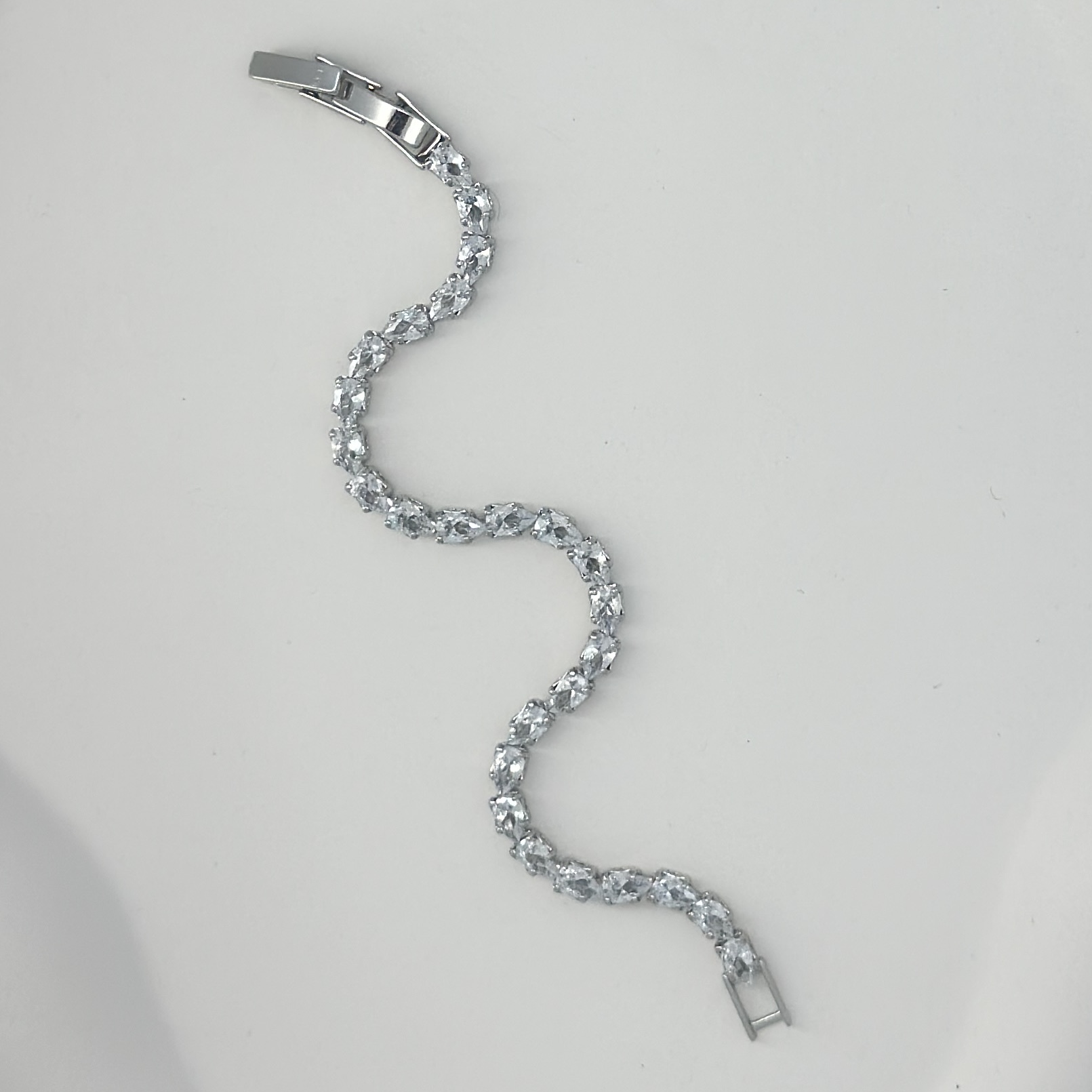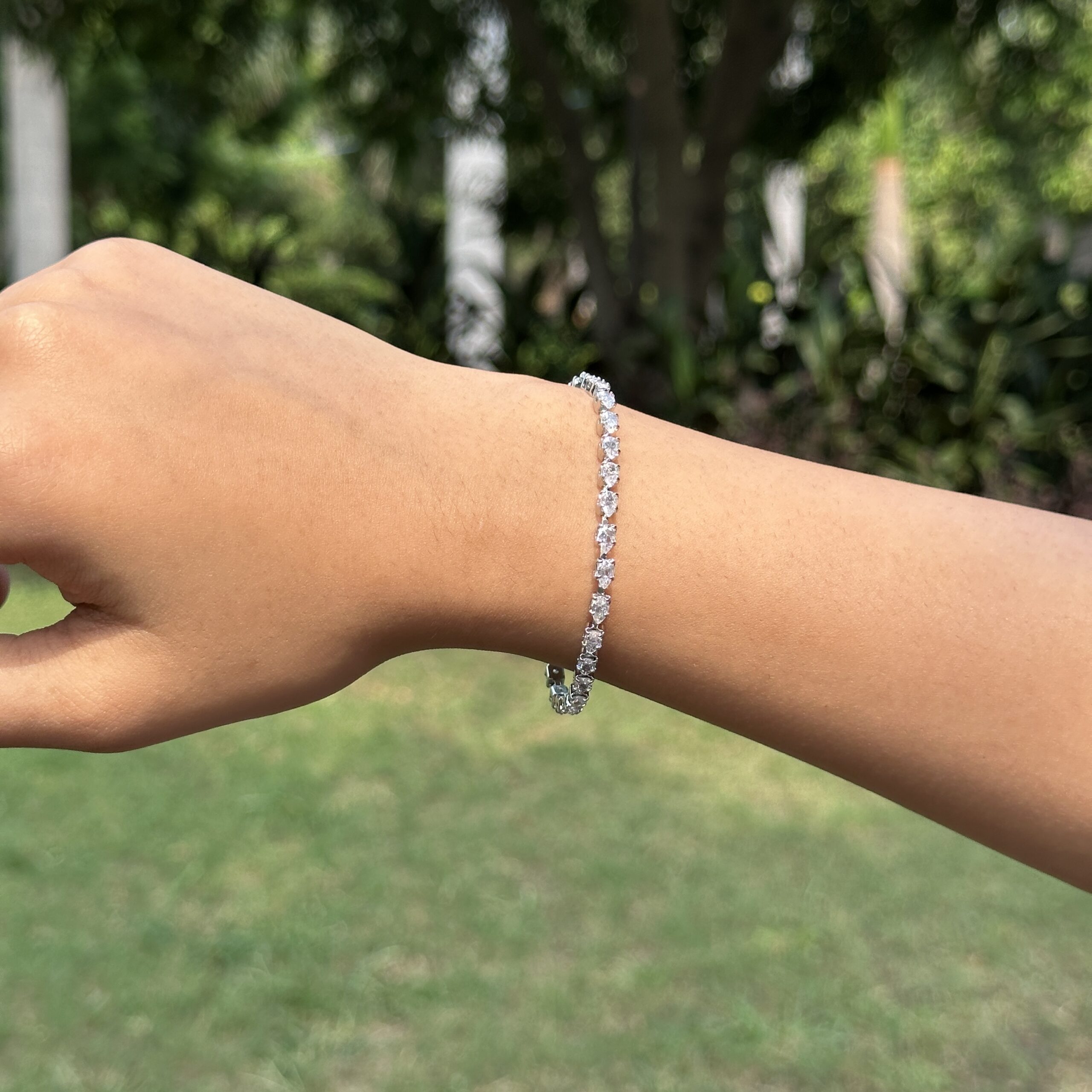 Timeless elegance meets everyday wearability in the Petal Tennis Bracelet. Designed with a continuous row of flower-like clusters, each set with clear cubic zirconia (AD), this bracelet captures light beautifully to create a refined shimmer that feels both delicate and eye-catching. The slim silhouette hugs the wrist closely, allowing the sparkle to stand out without overwhelming your look. Its flexible construction ensures easy movement, while the polished silver-tone finish adds a cool, modern touch. Perfect as a daily accessory or as a finishing detail for special occasions, this tennis bracelet with cubic zirconia stones brings versatility to your jewelry collection. It complements professional outfits during the day, transitions seamlessly into evening looks, and holds its own as a statement of subtle sophistication.