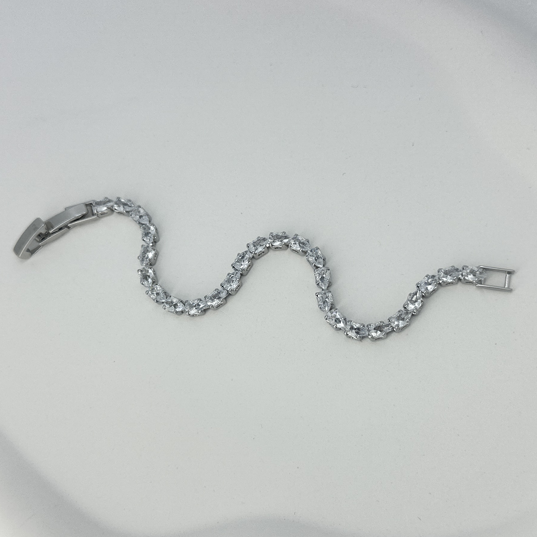 - Slim tennis line with petal-style clusters of clear cubic zirconia (AD) for continuous brilliance