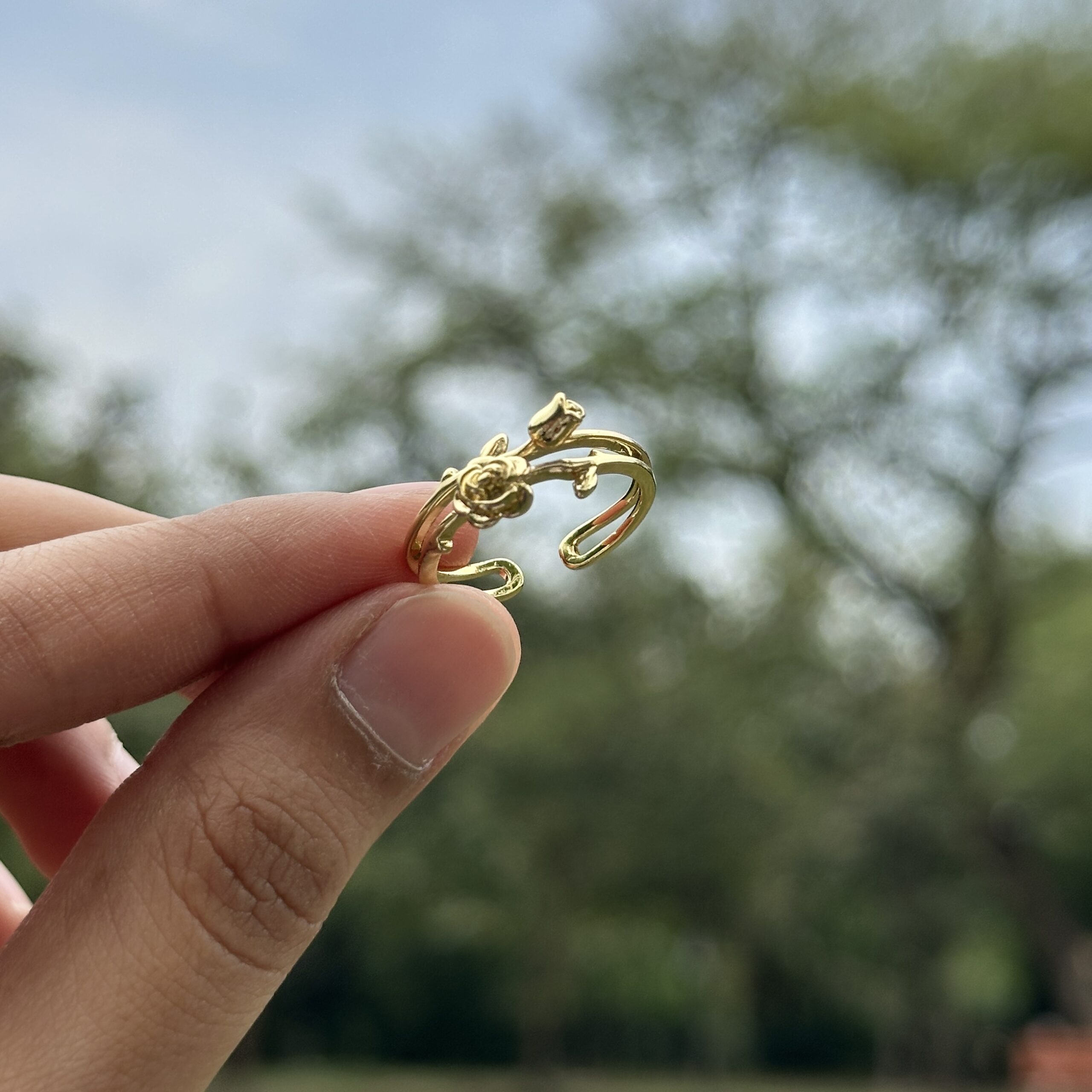 A delicate ring inspired by the shape of a blooming rose, designed to add a soft and feminine touch to your look. The detailing gives it a slightly romantic feel while still keeping it simple enough for everyday wear. It’s the kind of piece that stands out quietly without being too heavy or overdone. Crafted with a stainless steel base and finished with an anti-tarnish coating, it’s made for regular use while maintaining its shine. Style it on its own for a subtle statement or pair it with other minimal rings for an easy, layered look.