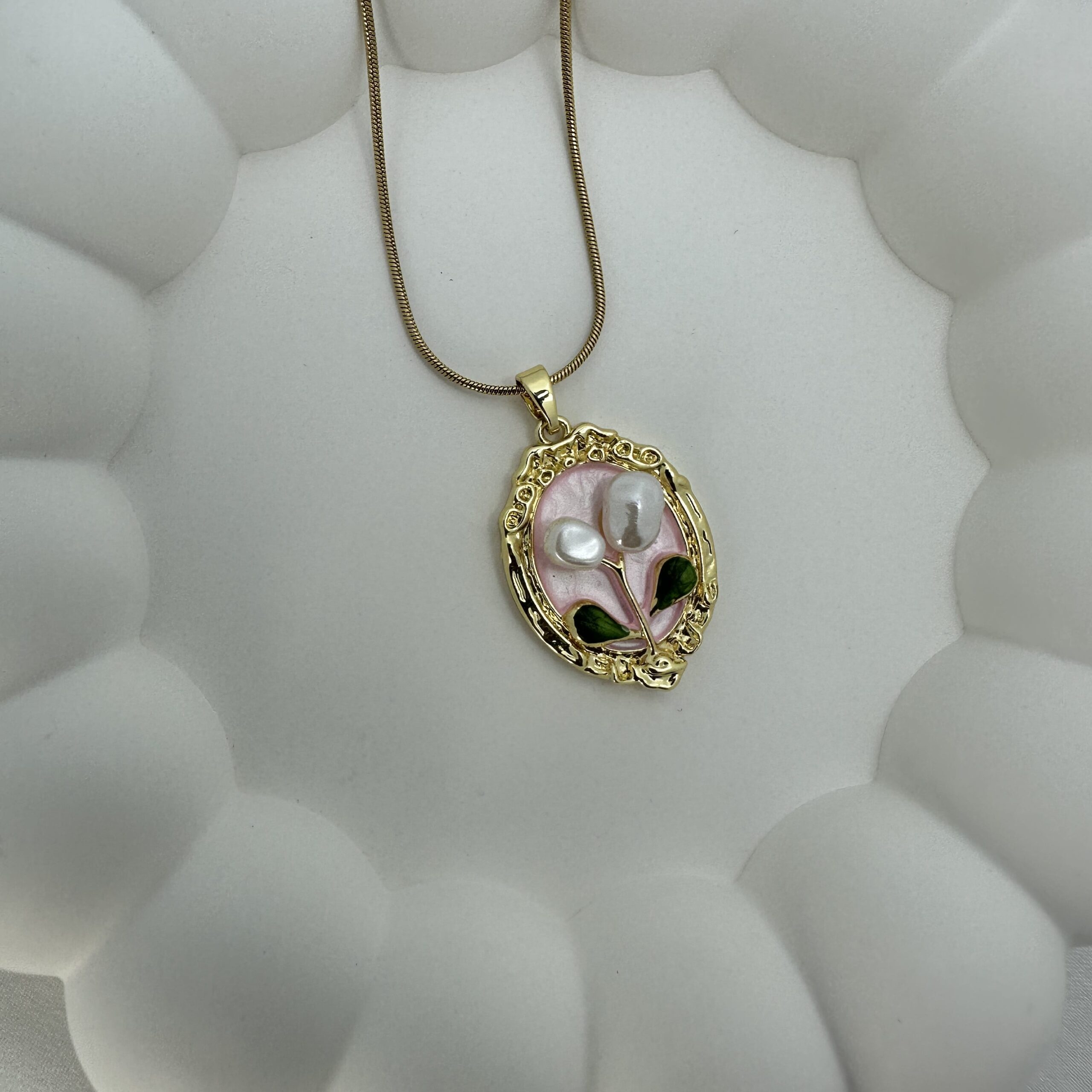 A piece that feels like wearable art, the Secret Garden Pendant brings together craftsmanship and elegance in the most delicate way. The centerpiece is a hand-painted enamel flower with soft pearly tones, capturing the beauty of nature in miniature. Set inside a smooth oval frame crafted from stainless steel, it balances grace with durability, making it a piece that you’ll reach for every single day. The enamel gives it a luminous, painterly texture, while the stainless steel ensures it stays tarnish-resistant and long-lasting. Whether you see it as a secret garden captured in jewelry or simply as a timeless bloom to carry with you, this pendant adds meaning and charm to even the simplest moments.